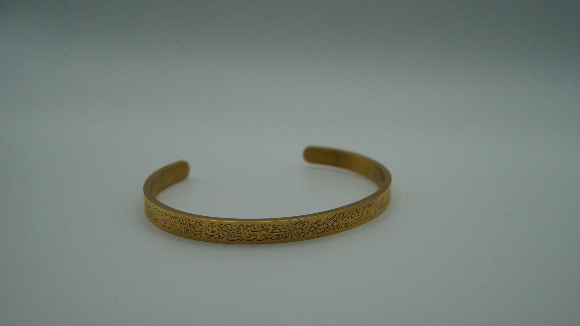 A beautifully crafted open cuff bracelet engraved with Ayat Al-Kursi (آية الكرسي) in Arabic calligraphy. Plated in 18k gold, it is more than jewellery — it’s a reminder of protection, faith, and strength, designed to be worn every day.